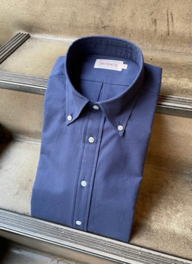 昨日ご紹介しました、『RE-IVY LEAGUE』も元である『IVY LEAGUE』と同様、ブランドの”顔”とも言える、もう<1品番>の『SHIRT=SAN FRANCISCO』です。 今日ご紹介する『モデル=SAN FRANCISCO 2014』は、”モデル名”にも入る、<2014年>より、以前の『モノ』を元に”UP DATE”させた、進化版、”台襟”を従来よりも若干低くし設定し、合わせて”襟”も気持ち”小振り”に変更、以降は、”STANDARD MODEL”としてラインナップされています。 『IVY LEAGUE』は、胸ポケットが付く等、カジュアル寄りな『B/D SHIRT』という位置付けですが、『SAN FRANCISCO』は、胸ポケットは付かない、着丈は気持ち長めに設定されている等、”TUCK IN”派の方や、『JACKET』の着用頻度が多いお客様に、人気がある、『TRADITIONAL SHIRT』です。 今日ご紹介する『SAN FRANCISCO 2014』、個人的には、この”色出し”に”KNOCK OUT”されちゃいました!、『WORK』な印象の<col:NAVY>でも無ければ、『MILITARY』的、黒寄りな、濃い<col:NAVY>でも無い、絶妙で且つ、落ち着いた印象が半端ない、<col:2(NAVY)>、この雰囲気なら、『CHINO、MILITARY(OLIVE)PANTS』には、抜群に相性が良さそうですよ!! サイズ展開は、いつもと変わらずの<size:2、3>、僕はずっと<size:2>を愛用中ですので、ご参考にして下さい。 では、販売スタートです!、昨日の『RE-IVY LEAGUE』含め、”CHECK”お願いします〜!! size:2...肩幅:43.5cm、身幅:55cm、袖丈:63.5cm、着丈:74cm 3...肩幅:45.5cm、身幅:58cm、袖丈:65.5cm、着丈:77cm col:2(NAVY)