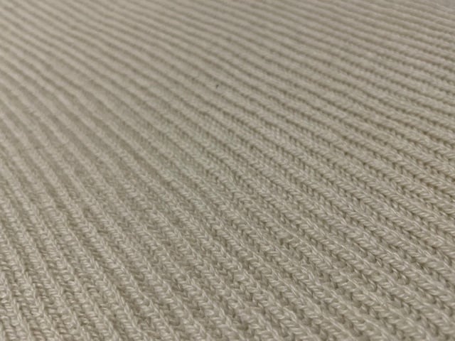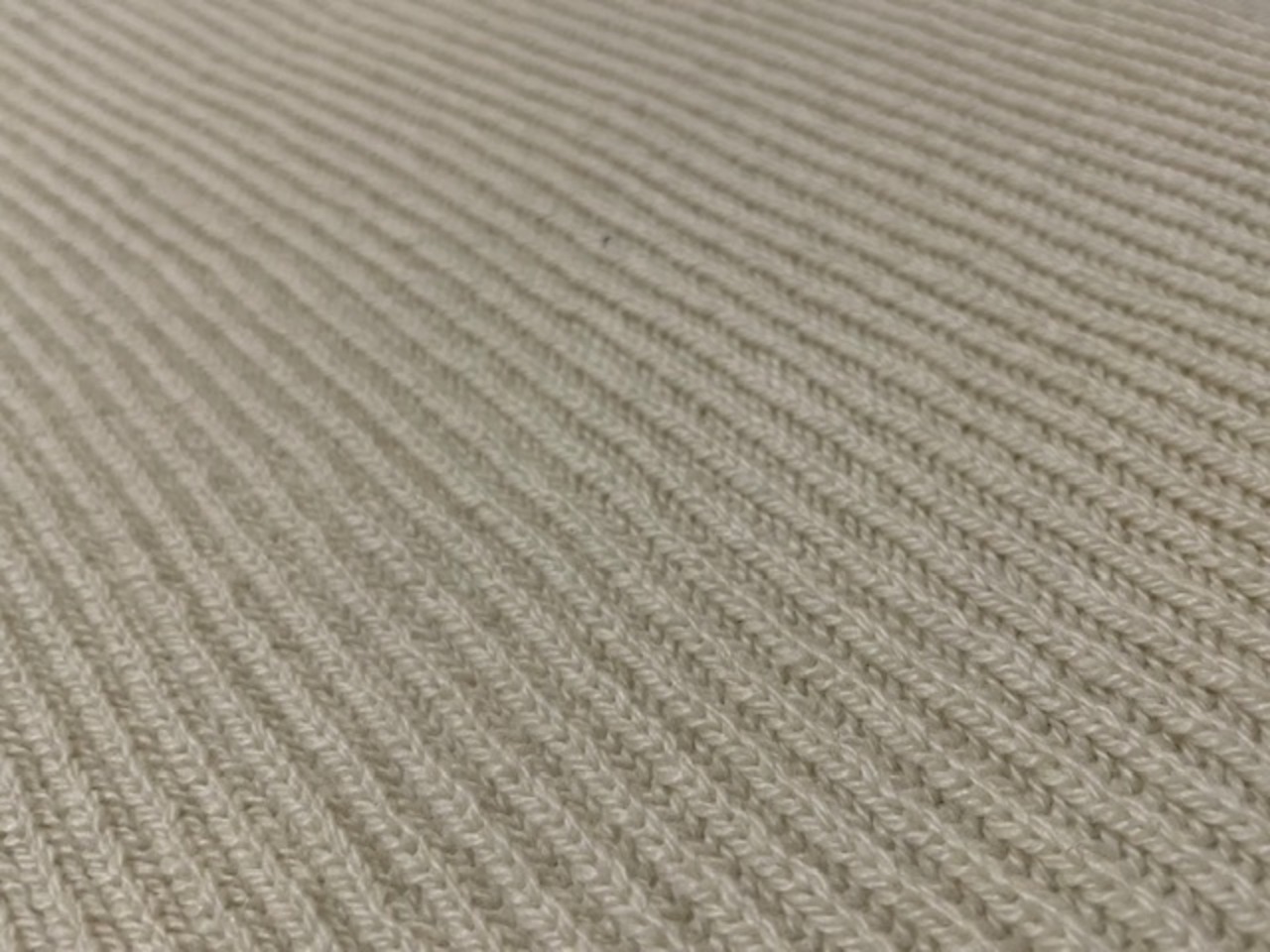 ”素材”には、”完全別注”の、<強燃 CASHMERE YARN 100%>を使用、『MUFFLER』という『形』を考慮し、編み地は”畦編み”にしました。