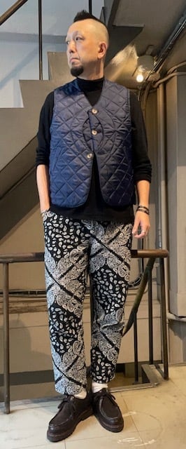 着こなしに関しては、当店が、継続してご提案している、冬の『OUTER』の”代表格”、『KEELA FALKLAND COUNTRY JACKET』等、同国や、同テイストの『OUTER』の”INNER”として使ってみたり、今日位(現在18℃)の気候なら、『L/S TEE』、『SWEAT』、『SWEATER』等の上に羽織って、『LIGHT OUTER』として着てみたりと、秋冬には、”マスト”な『モノ(VEST)』なので、多種多様に、楽しみながら、着用して頂けると思いますよ!