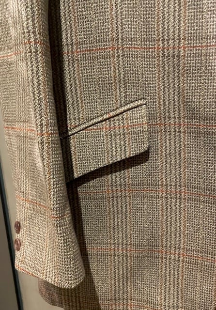 又、腰位置の”POCKETS”が斜めに設定されていたり、前振りの袖、深く入った”CENTER-VENT”も、全て、”乗馬用”として考えられた『HACKING JACKET』ならではの、特徴的な”デザイン”です。