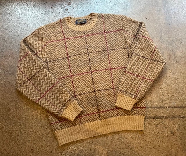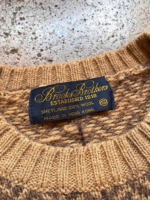 GOOD CONDITION ”80'S~90'S BROOKS BROTHERS SHETLAND SWEATER(MADE IN HONG KONG、HERRINGBONE&WINDOWPANE CHECK)”