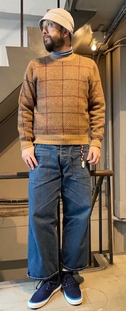 <80'S~90'S>辺りの、『BROOKS BROS.』らしい、”TRADITIONAL”な雰囲気の『SWEATER』、サイズが<size:S>というのが、まず嬉しいですし、そして、この<HERRINGBONE&WINDOWPANE CHECK>!!、で、<col:CAMEL系>と、も言う事が無い位の好条件が揃った『モノ』。