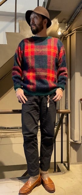 そして、”TRADITIONAL”な、<TARTAN CHECK PATTERN>ですよね〜!、この手の『SWEATER』は、個人的に”大好物”!、ですので、その”雰囲気”に惹かれてしまったら...、スルーする訳にはいきません。
