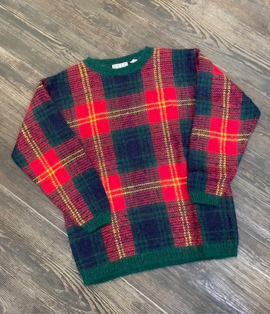 GOOD CONDITION ”NELL FLOWERS by J.G.HOOK CHECK PLAID CREW/NECK SWEATER(TARTAN CHECK PATTERN、MADE IN TAIWAN PUBLIC OF CHINA表記)”