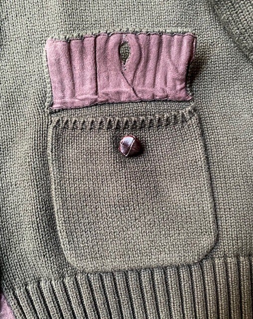 ”素材”は、<COTTON 100%>で、しっかりと目が詰まった、<HEAVY-WEIGHT>の『SWEATER(CARDIGAN)』、『RALPH LAUREN』お得意の、”COUNTRY”な雰囲気を、<POLYESTER>素材を使用した、<SUEDE>調の、”ELBOW-PATCHS”で、プラスしてくれています。