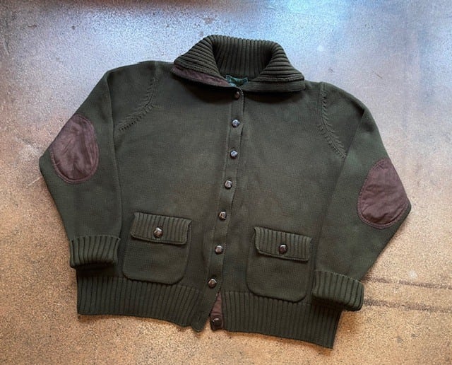 USED ”90'S~00'S LAUREN RALPH LAUREN BUTTONS-UP COUNTRY CARDIGAN with ELBOW-PATCHS(COTTON 100%)”
