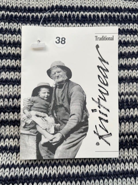 この『SWEATER』のルーツは、非常に寒く、激しい海上で仕事をする『FISHERMAN』の為の『WORK WEAR』で、彼の無事を祈る女性(妻)が、愛情を込めて、時間を掛け編んだ『モノ』です。