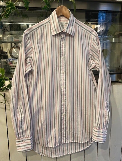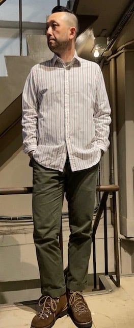 ”THE WINDSOR-COLLAR”を始め、”NO-CHEST-POCKET”、”BACK-TAIL”の長さ等、”イギリス”らしい、”ディテール”を備える、”CLASSIC”な『SHIRT』なんですけど、個人的には、この<配色(col:WHITE/LT PINK/LT GREY)>が惹かれ、『MILITARY』系の『PANTS』に抜群に合うよな!、と、”パッ”とイメージが浮かんだので、PICK UPしてきました。