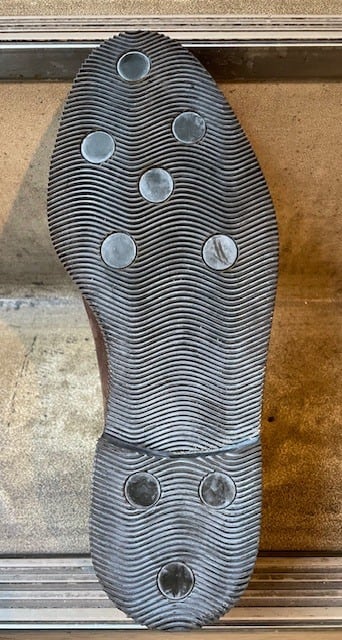 サイズ表記は、<size:6 1/2>、表記だけを見ると、少し小さめかな、と思いながらでしたが、一応、僕(25.5cm)も足入れしてみたんですが...、案外、良いサイズ感で、履けちゃった!、んですよね〜、感覚としては、<size:25~25.5cm>辺りなら、いけちゃう感(履ける感じ)あります。