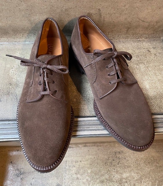 MINT CONDITION ”90'S PINO GIARDINI BROWN SUEDE PLAIN-TOE DERBY SHOES(MADE IN ITALY)”
