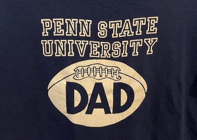 『FOOT BALL PRINT』の中に入る”DAD”は、文字通り、”父親(お父さん)”の意味で、『PENN STATE UNIVERSITY』の『SPORT TEAM=NITTANY LIONS』に所属する”息子”を応援する際に、その”親”は、『PENN STATE DAD(or MOM)』の『WEAR&GOODS』を身に付け、応援する事が定番となっています。