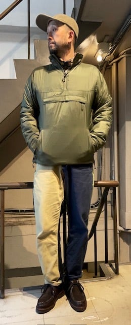 一般的には、見た目だったり、”ヴィジュアル”のボリューム感等を含めて、『暖かい”WEAR”=DOWNが最高!』というイメージですけど、この『SMOCK』に関しては、嘘偽りなく、それ以上の”暖かさ”!!、しかも<PRIMALOFT=ケミカル素材>なので、汚れちゃえば、ネットに入れて、”洗っちゃってOK”、ですし、乾けば元通り!、と、扱いが非常に簡単な点は、愛用者としては、素晴らし過ぎる、”オススメ。ポイント”です。