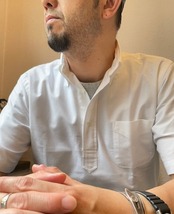 ちなみに僕(178cm、70kg)で、<size:M=MY SIZE(愛用中)>なんですが、<1枚>で、若干、緩めに着るのも、かなり良い雰囲気ですので、感覚としては、<ONE SIZE UP>位なら、着方によっては、全然”アリ”かなと思っていますので、その辺のご相談は、お問い合わせ下さい。”着て、洗って”を繰り返し、しっかりと、自分に馴染ませていけば、必ずや、『MY VINTAGE』として、手放せなくなる事でしょう!