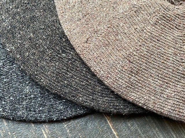 <定番色=col:NOIR(BLACK)、MARINE(NAVY)、CREAM(NATURAL)、GRIS(HEATHER GREY)、4色>に加え、<col:COAL(CHARCOAL GREY)、PEPPER(HEATHER BROWN)、CAFE(LIGHT BROWN)>の、<計7色>でのご提案となります。