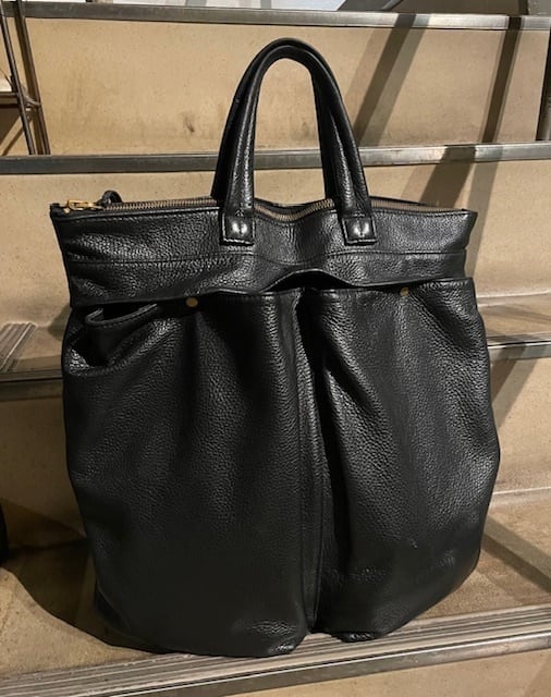 さて、そんな『MARINEDAY』の、最上級に位置する『HELMET BAG』が、僕も大好きな、<ITALIAN SHRINK LEATHER>をふんだんに使用した『モノ=LEATHER HELMET(BAG)』なんです!