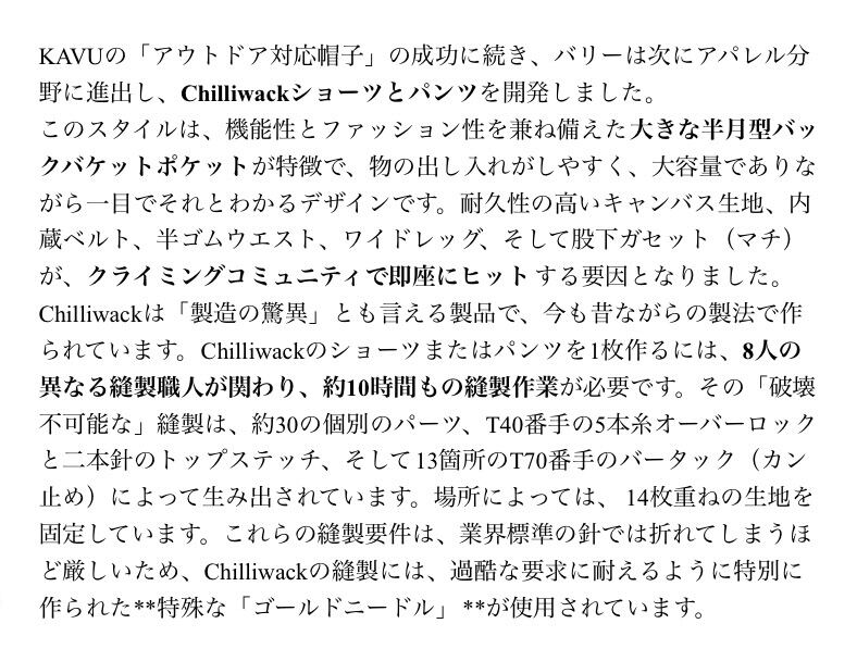創業者の彼は、『BRAND=KAVU』の”アイコン”として、最初に『STRAP CAP』を手掛けました、現在でも”大人気”ですよね!(ちなみに、<2作目>として手掛けたのが、この『CHILLIWACK PANTS&SHORTS(1995年誕生)』なんですよ〜!)、その後、<2001年>には、最初の直営店を、”シアトル・バラード地区”にOPENし、<2023年>で、祝<30周年>を迎えました(今シーズンで、<32年目>です。)。