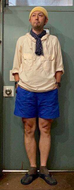 また、穿いた感じも、『THE SWIM SHORTS』というよりも、ちょっと”街穿き対応”的な感じで、丈の長さが、比較的長めだったのも良かったんです、この”サイズ・バランス&丈感”なら、『IVY BOY』定番の『BERMUDA SHORTS』に近い”雰囲気”で穿けますからね〜。