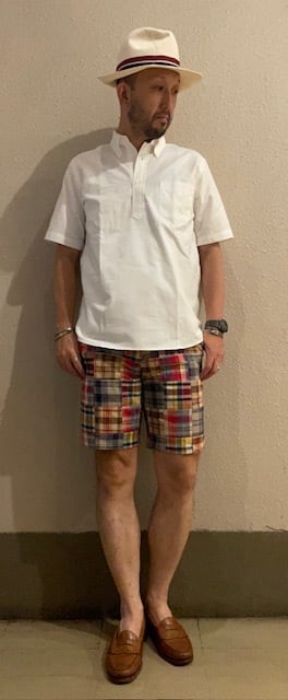穿いた感じは、『PIPED STEM(お尻の下から、ほぼ絞りが入らない、直線的なストレート・シルエットが特徴)』で、膝上丈ですので、正に”THE BASIC”な『BERMUDA SHORTS』、この安心感が良いですね〜。