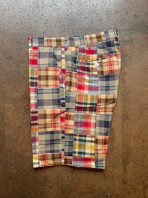 SOUTIENCOL ”PIPED STEM BERMUDA SHORTS(INDIAN PATCH-WORK MADRAS)”